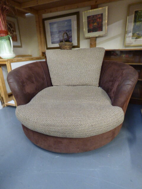 Cuddle swivel chair – 127cm width / 124cm depth / 80cm height = £75.00