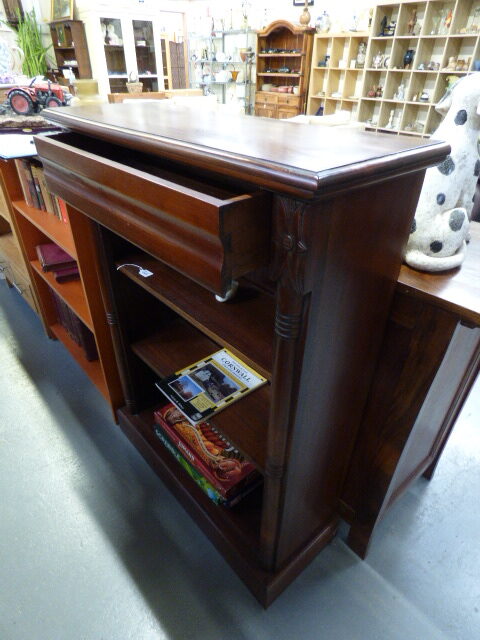 Dark wood bookcase with drawers – 90cm width / 34 depth / 120cm height = £65
