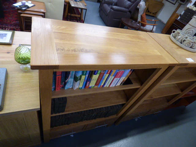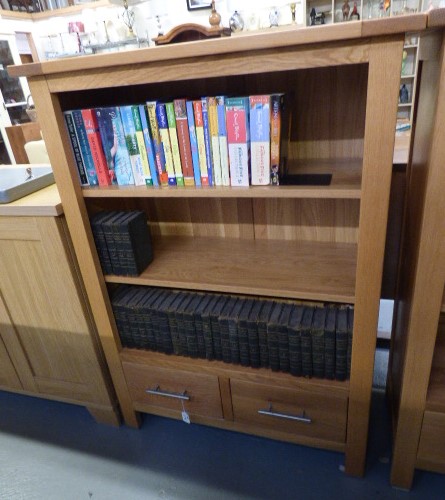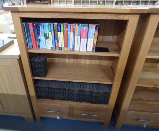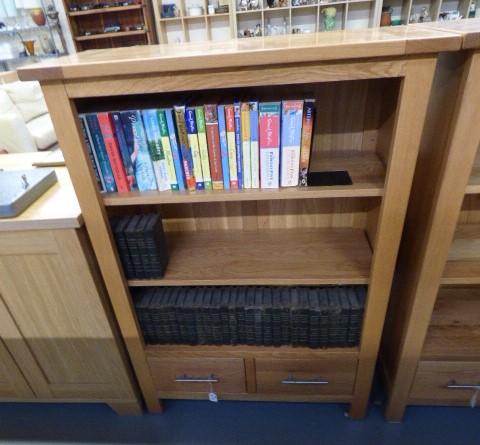 Oak bookcase with two drawers – 88cm width / 40cm depth / 120cm height = £175