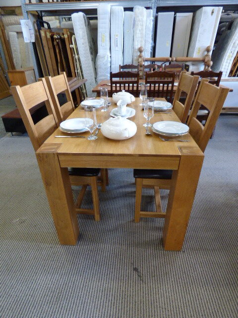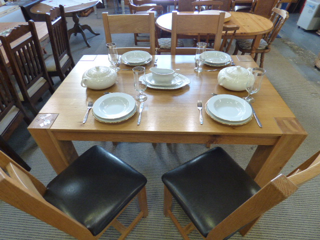 Oak table & 4 oak chairs – Table 140cm width / 90cm depth / 78.5cm height = £350.00
