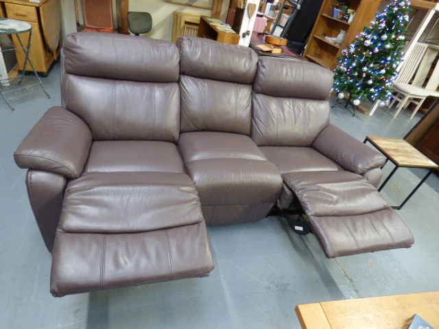 Reclining leather sofa – 212cm width / 90cm depth / 100cm height = £245