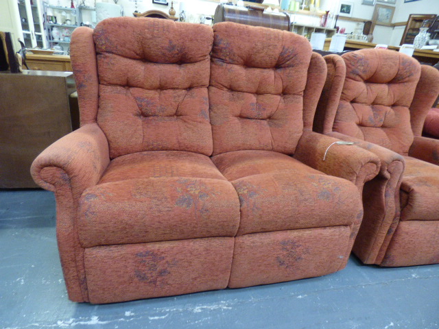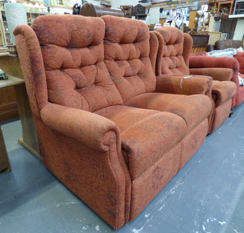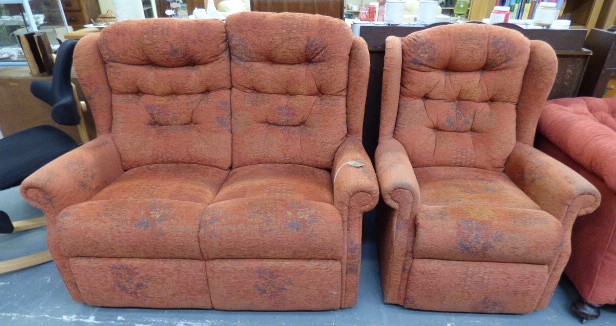 Two seater sofa & armchair – sofa 120cm width / 80cm depth / 108cm height – armchair 78cm width / 80cm depth / 108cm height = £180.00