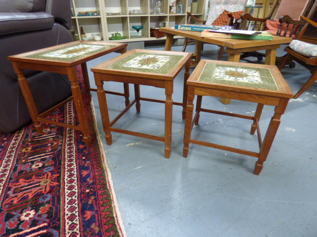 Attractive Danish Toften tiled top teak nest of three tables – 53cm width / 32cm depth / 46cm height = £65.00